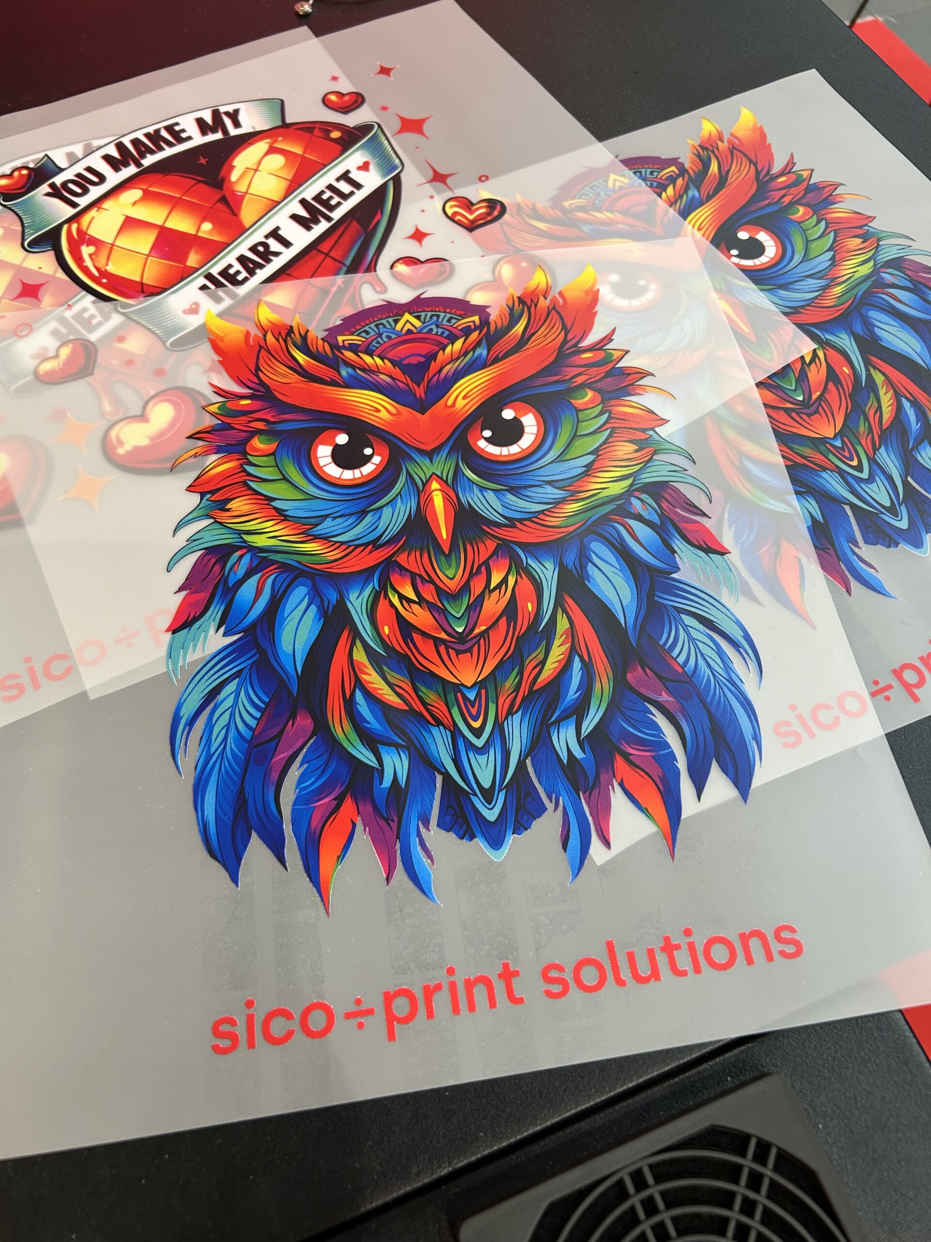 Grafika przygotowywana jest cyfrowo, po czym drukowana na folii z użyciem specjalnych atramentów pigmentowych. Po naniesieniu warstwy kleju i wysuszeniu, folia gotowa jest do aplikacji termicznej. Cały proces pozwala uzyskać bardzo szczegółowe, trwałe i elastyczne nadruki.